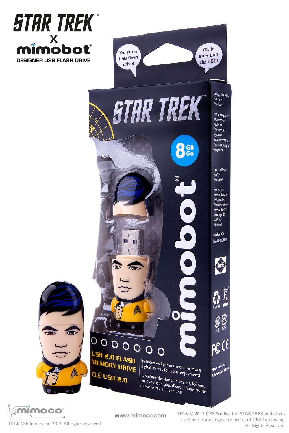 Sulu from the original Star Trek, played by the amazing George Takei is immortalized in this amazing USB Flash Drive for your computer. He joins other cast members from the Star Trek universe in this series from MimoBot. You can get it in a variety of storage sizes depending on your needs.