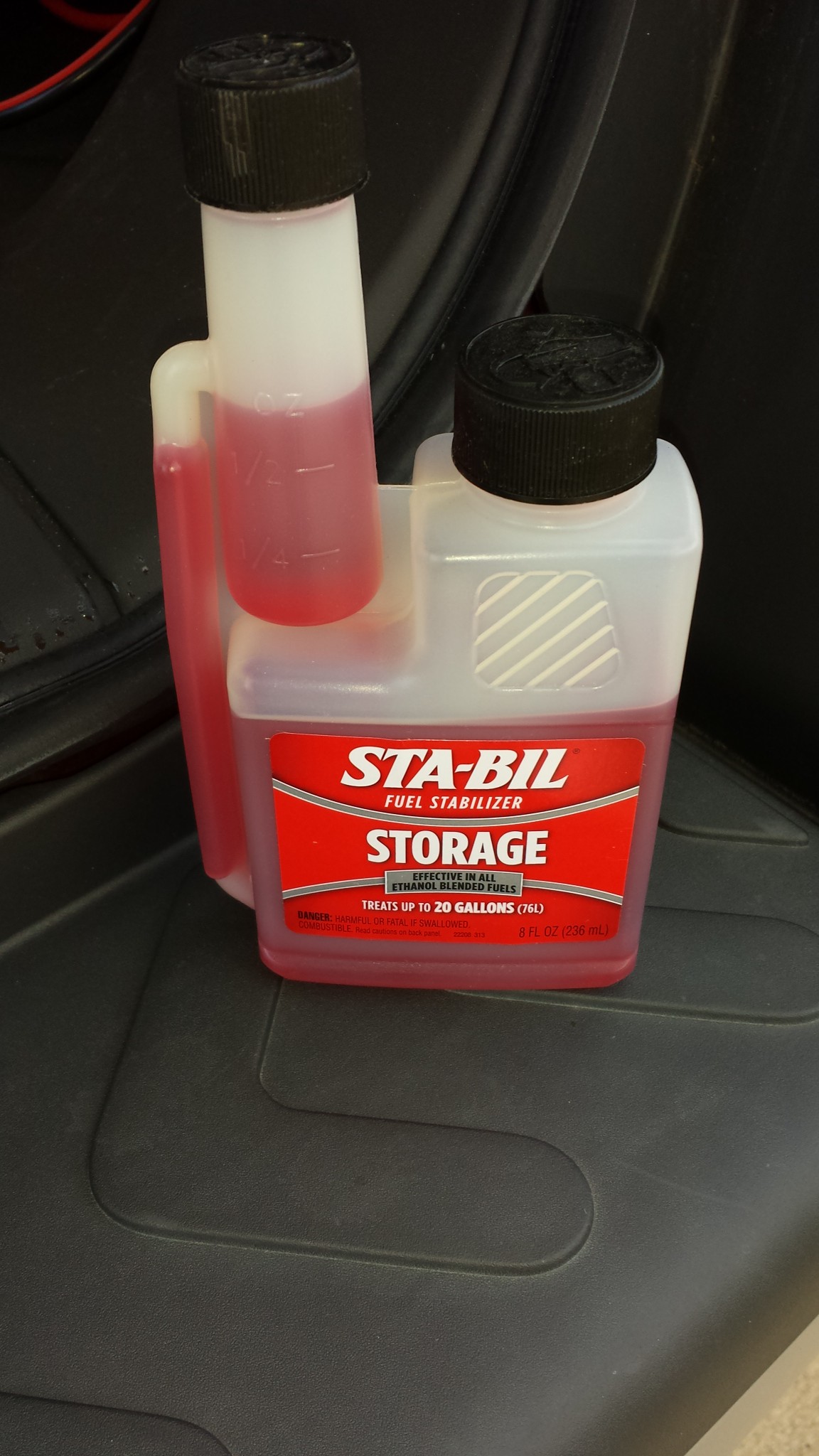 This is a good product. I use in my 5 gal gas cans that can go a year or more never being used. It will keep the gas from going bad.