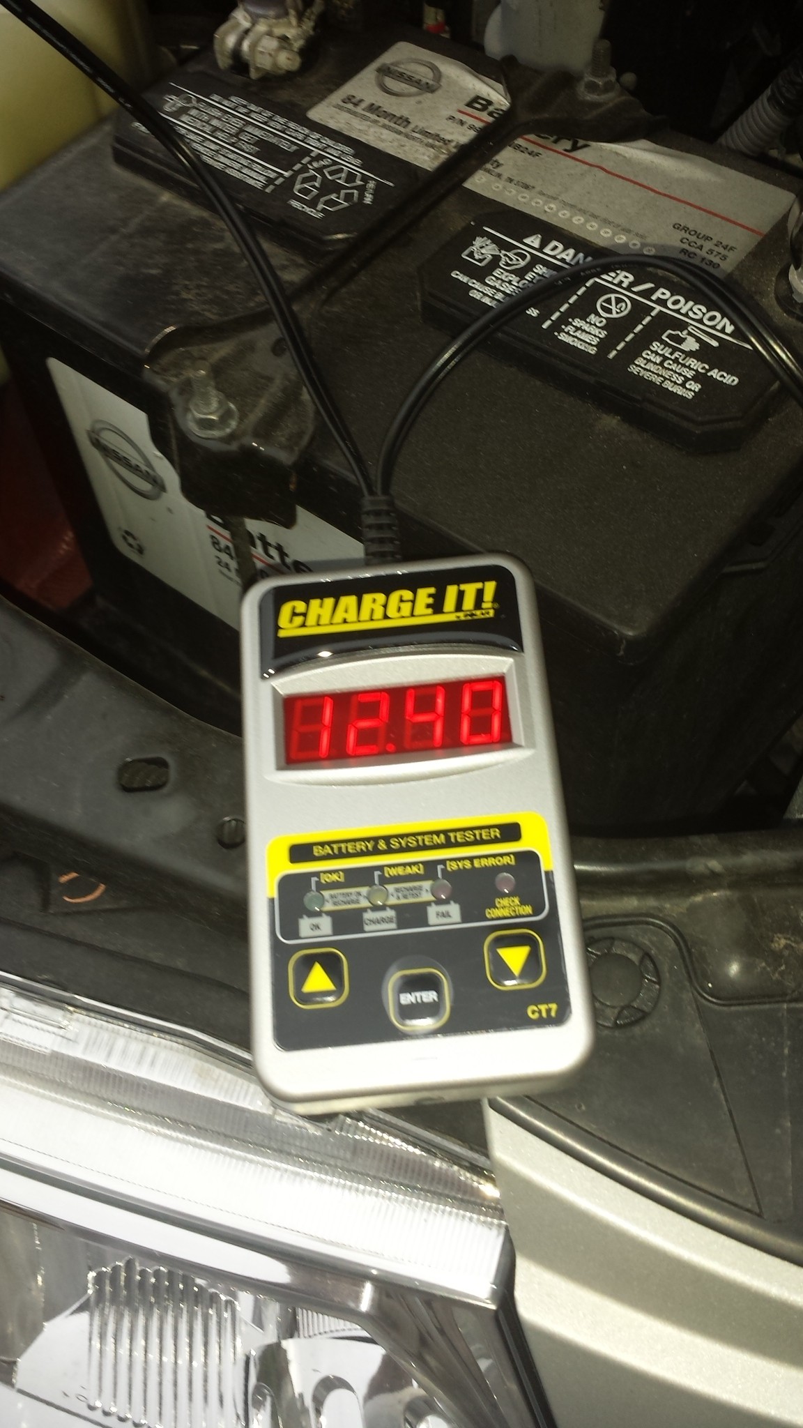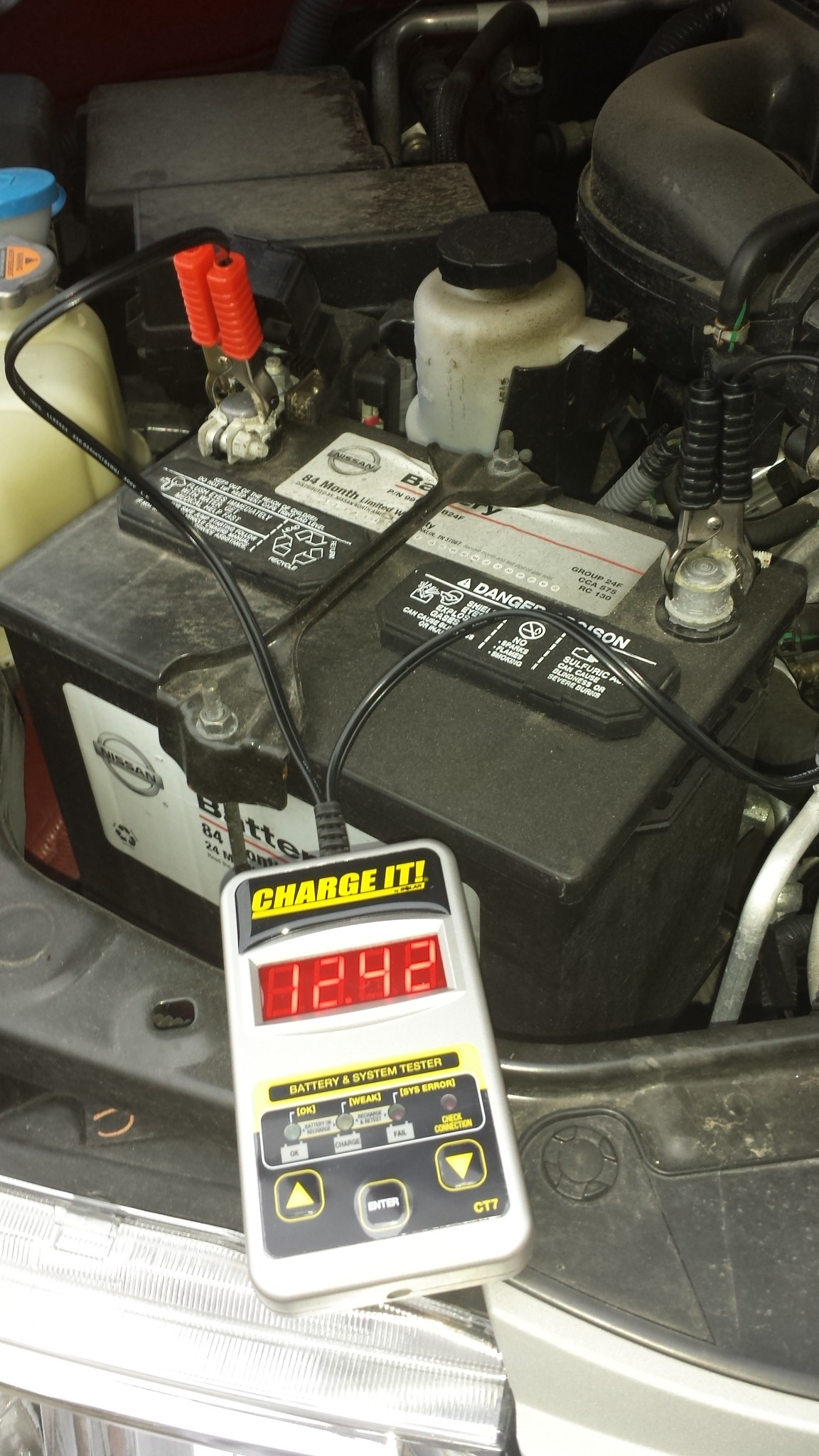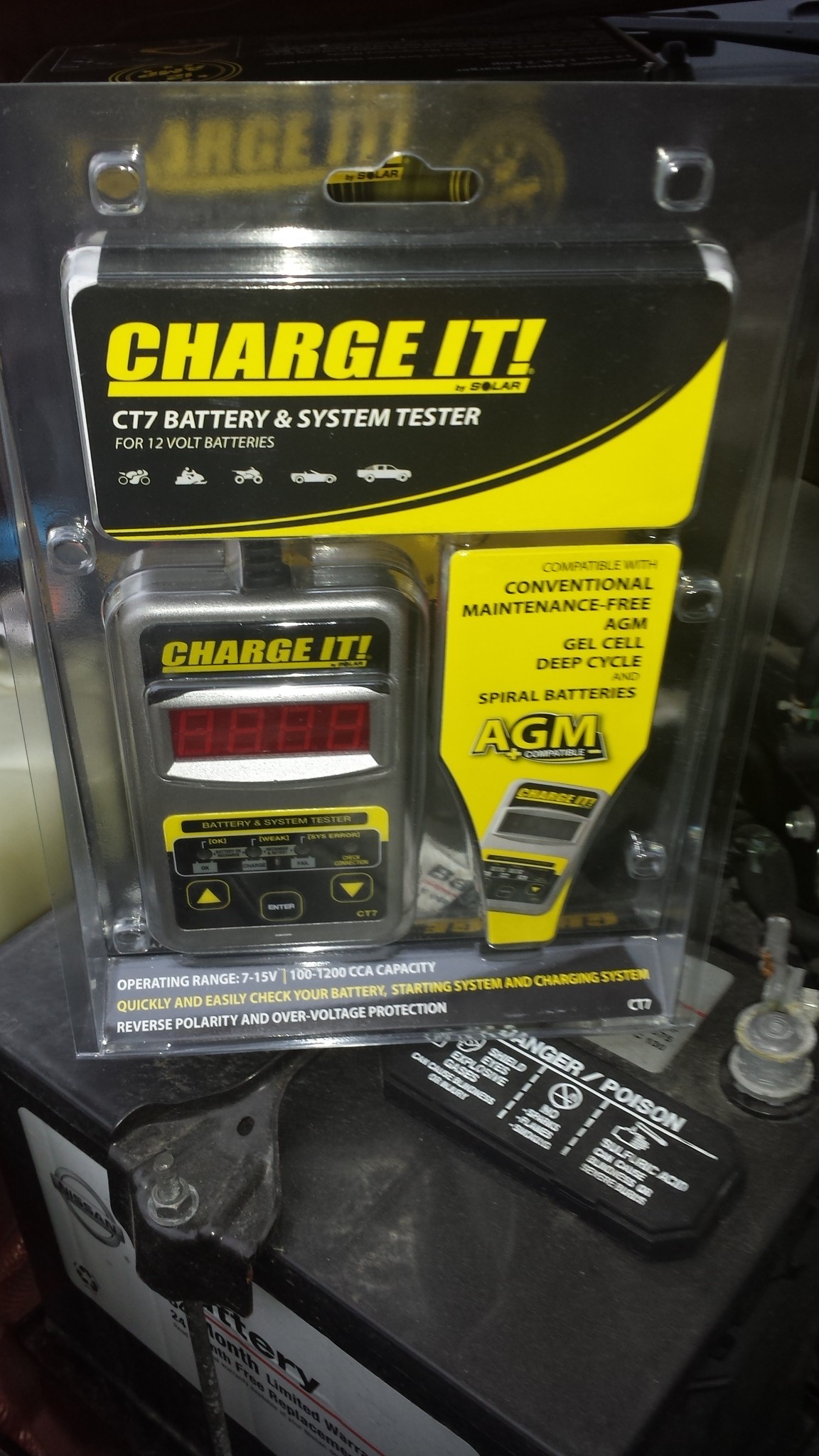 As you can see in the pics below, my battery in my Nissan Xterra passed the test! Are you sure your battery is ready for anything? Grab your Clore CT7 CHARGE IT! 12-Volt Digital Battery Tester at Amazon, and know that you are ready.