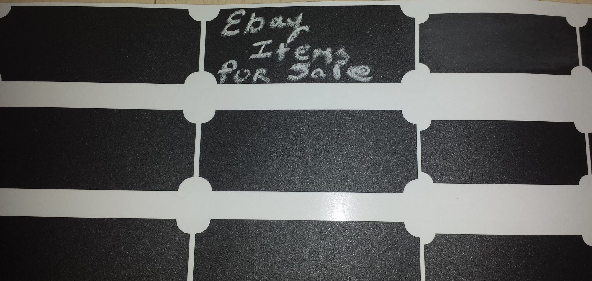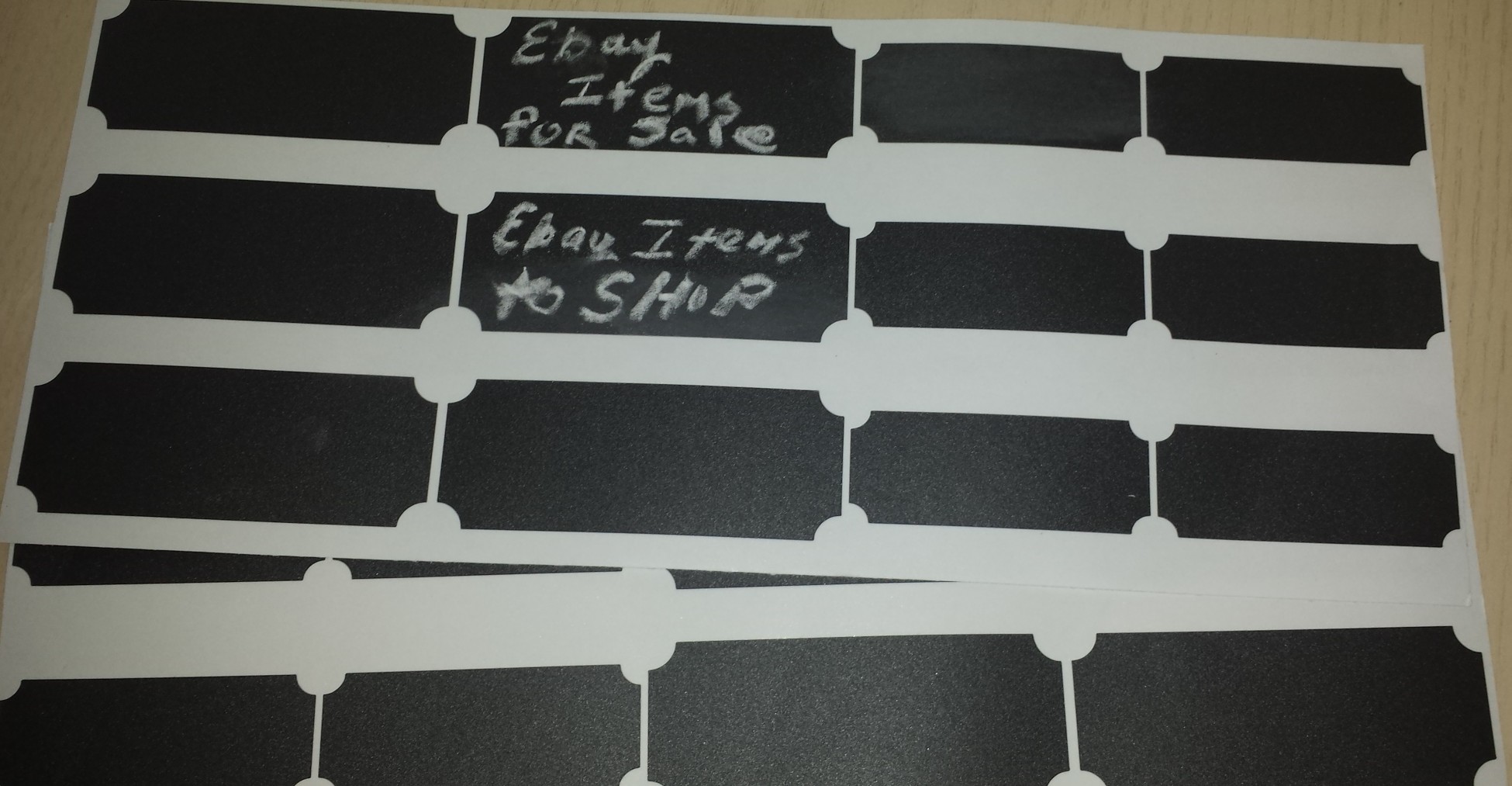 I am so glad that I did. These labels now attach to my shelves in the business room, which will allow me to further organize the space, and be able to change the content of the labels with the swipe of a napkin or paper towel if I needed to. Thank goodness for that too, I only had one piece of chalk, and for some reason, could not get it to write smoothly the way my head was thinking it was going to. So with a few tries, and not having to destroy any labels, I got it to what I wanted it to say, and attached them.
