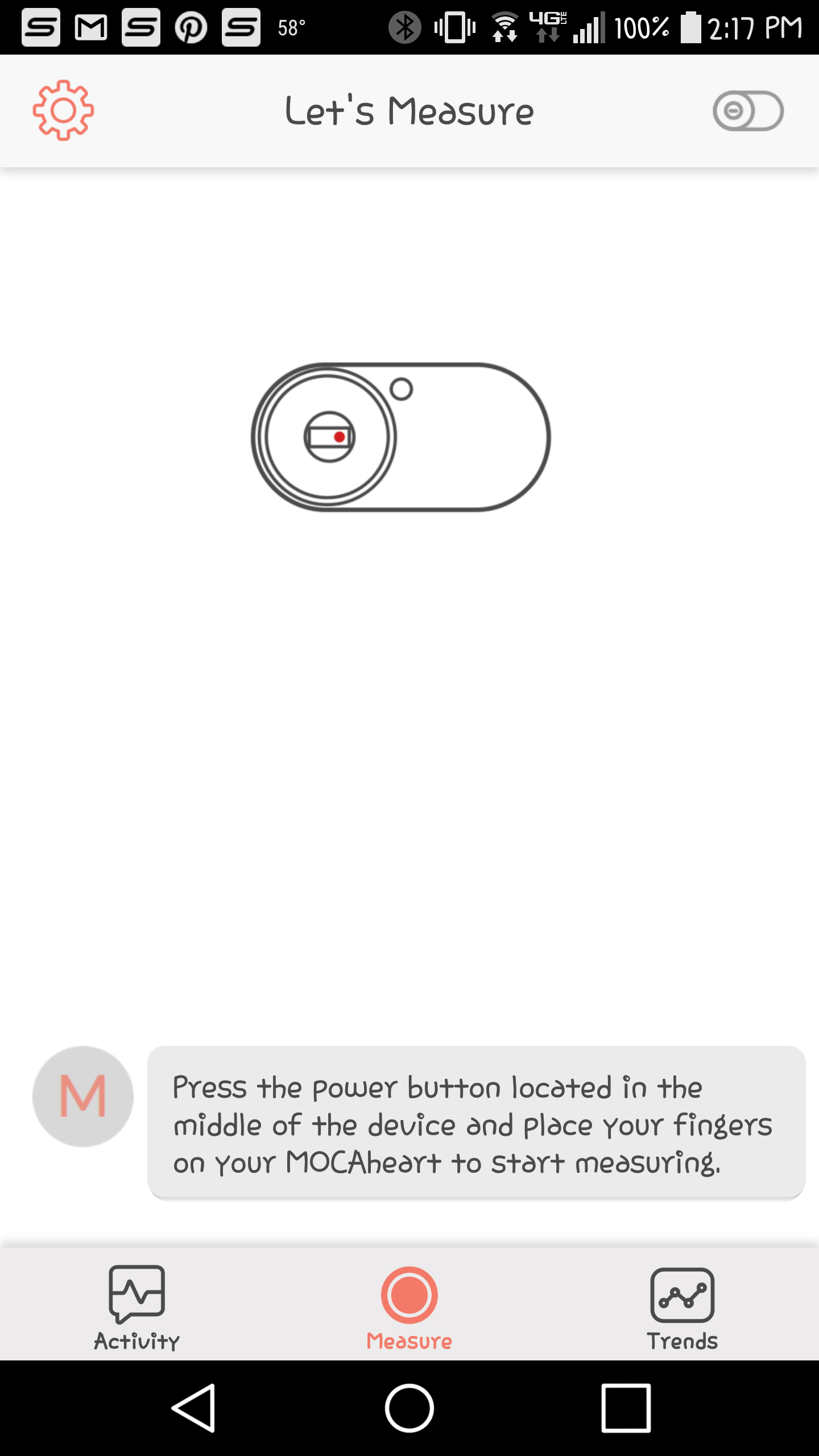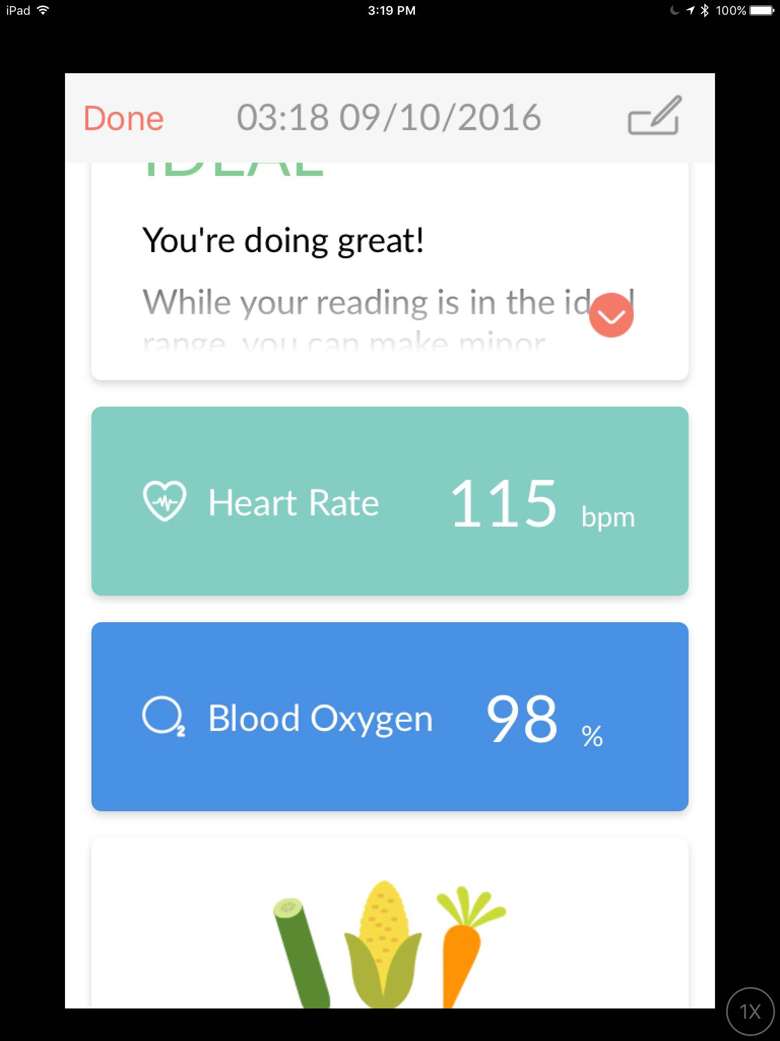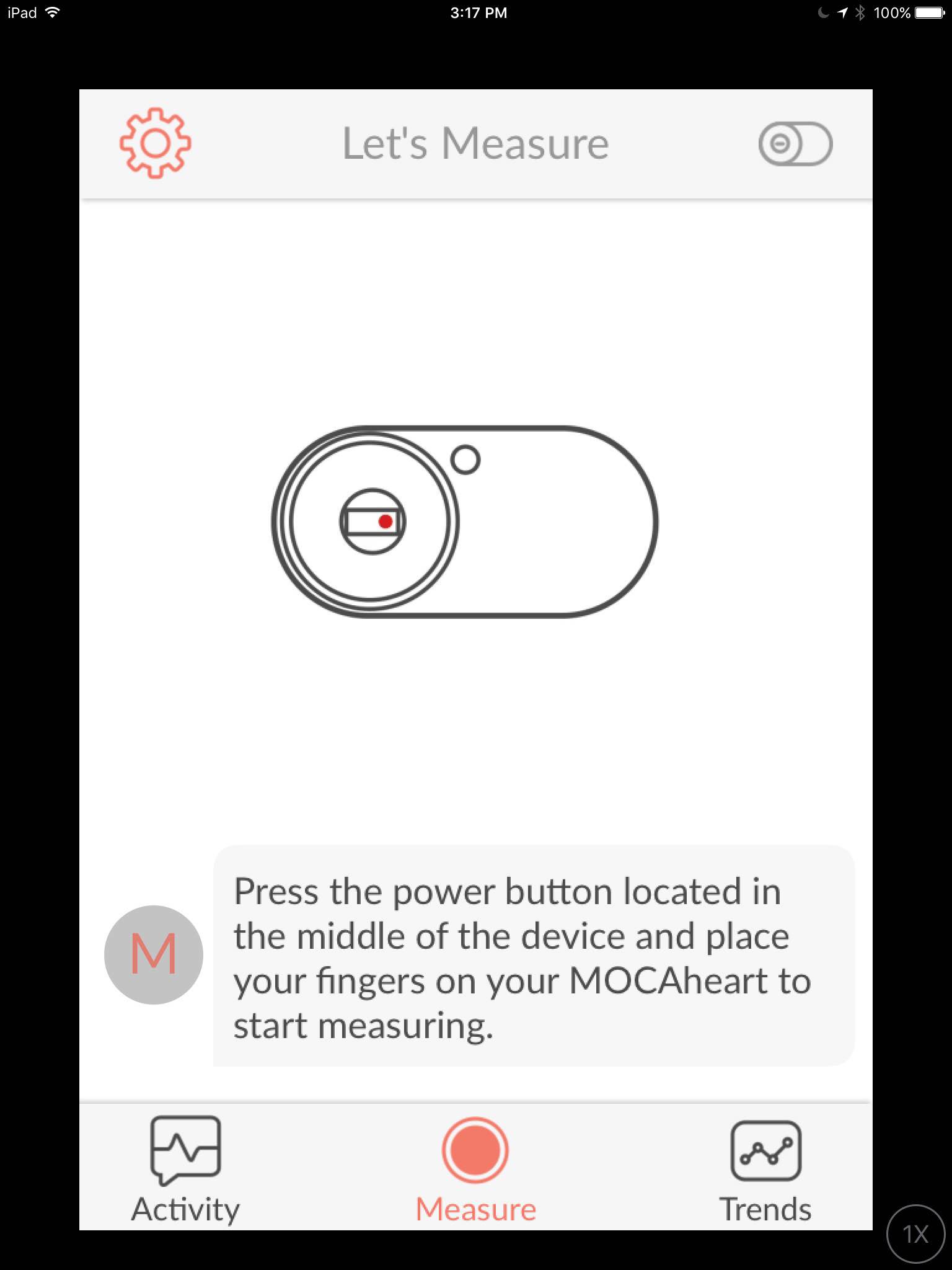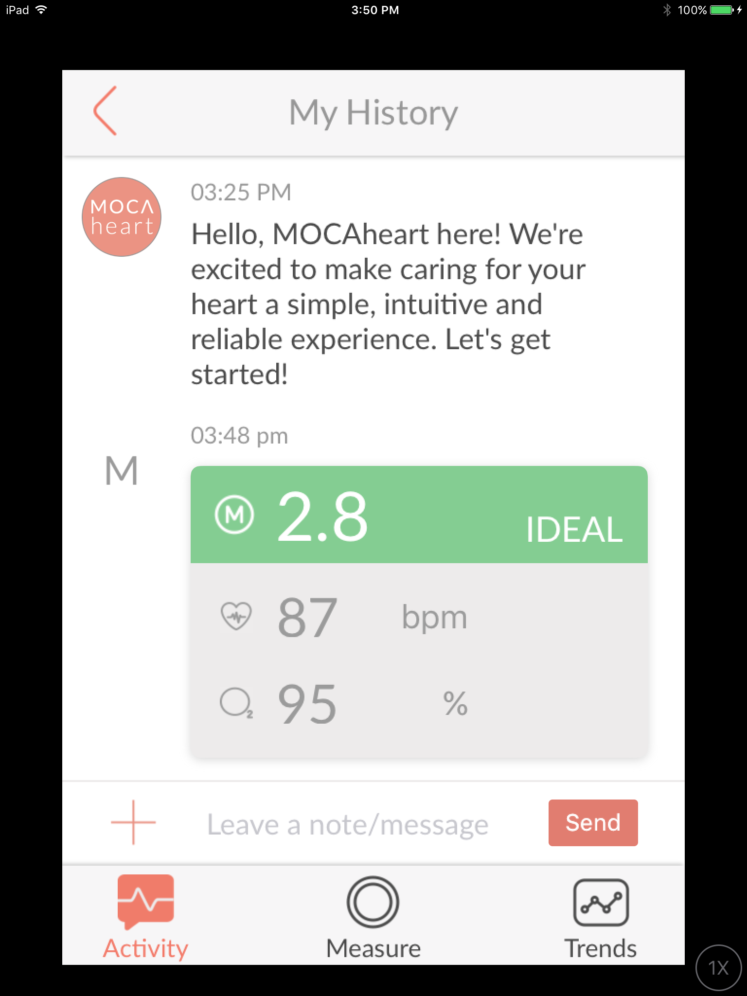 After you have started the app, it will walk you through what to do via screenshots and a quick video. Holding the MOCAheart device firmly in your fingers will start the readings that the app captures. In a few moments it will give you the results instantly so you have a representation of what is going on.