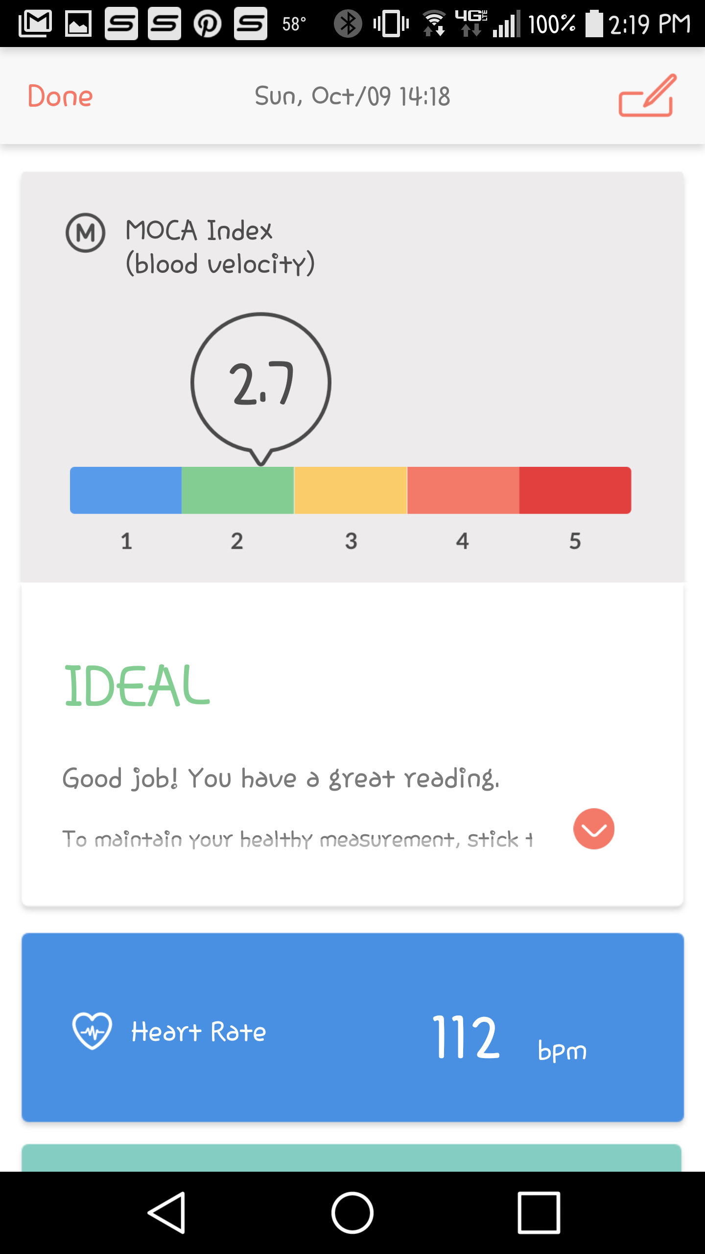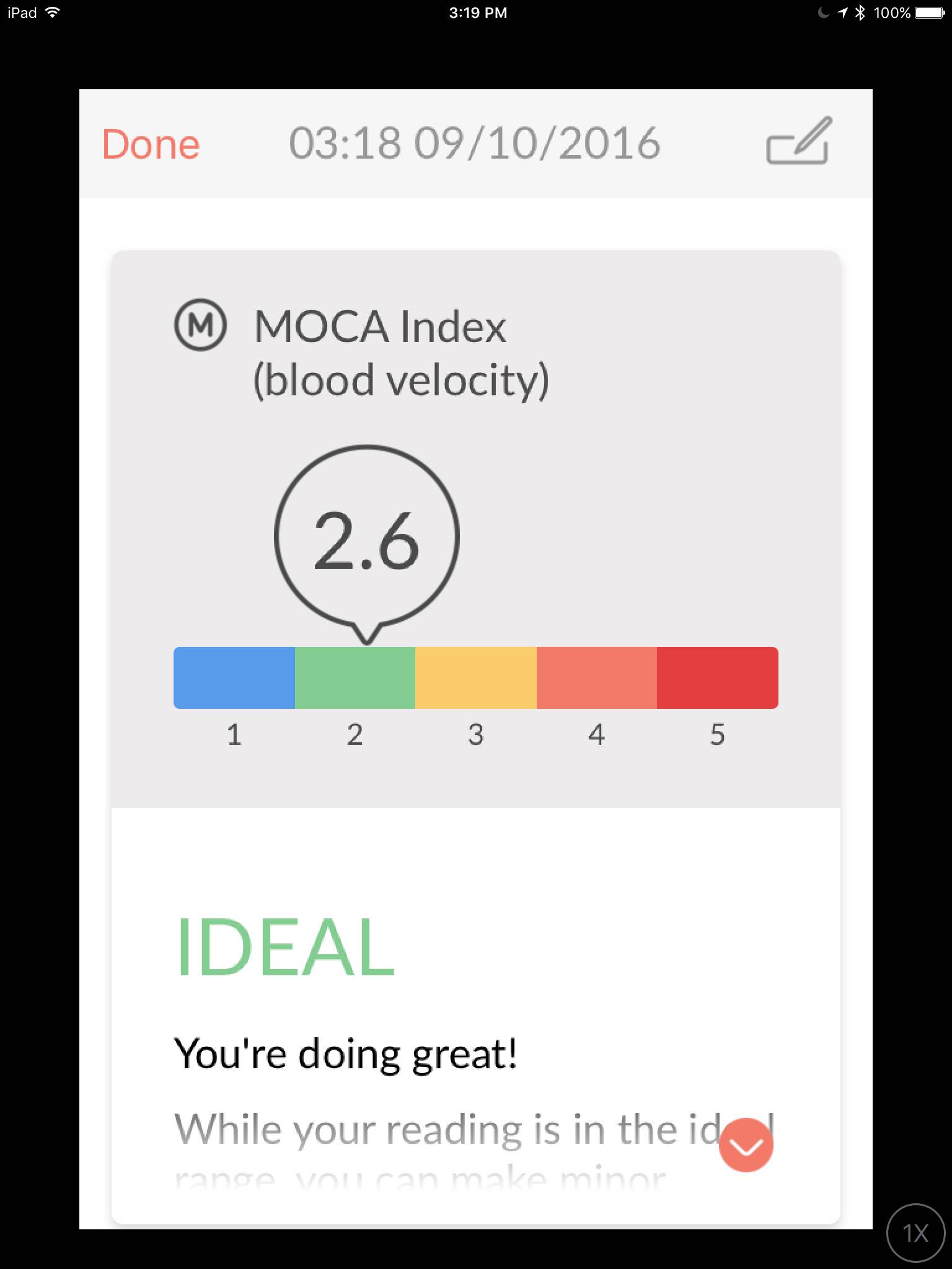 Depending on the overall number of the MOCA Index which is the combined value of the 3 tests explained above, you can see recommendations on what might be causing that number if it is elevated. Additionally, with repeated use and individual tracking, you can share those same results with your doctor. I know for many, it might give a peace of mind effect if results are always within a normal range. If not, it gives you the tools to talk to your physician to find out what you can do to improve your numbers.